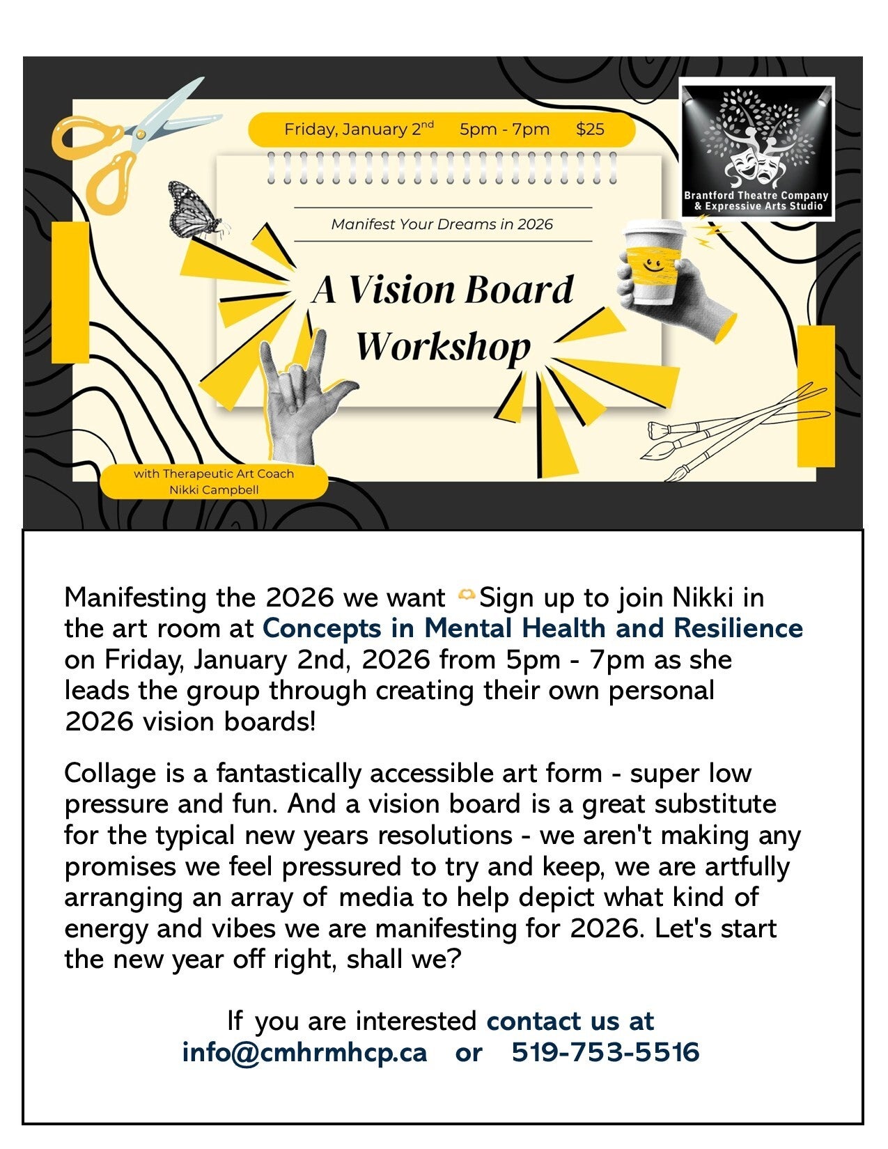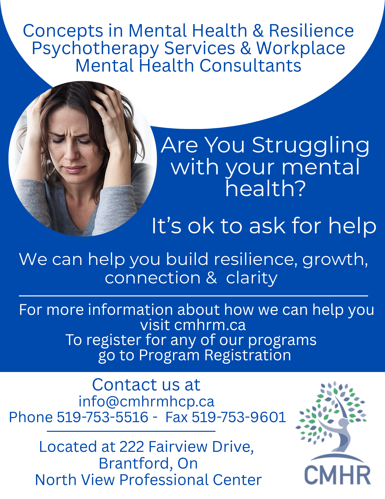 Here are some of the special programs currently being offered, each designed to provide meaningful support and valuable experiences. We encourage you to explore them, each one offers unique benefits that may be well worth your time and engagement. Please contact us at info@cmhrmhcp.ca or call 519-753-5516 if you have any questions. If you would like to register for any of these programs please go to our Program Registrations Page.